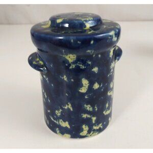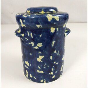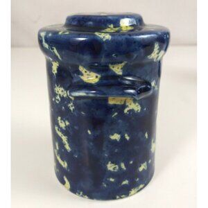 Vintage Spackleware Stoneware Blue Milk Can Salt & Pepper Shakers USA