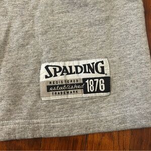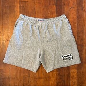 Dope gray Spalding shorts from the ‘90s. Logo patch on left leg. Double side pockets. Amazing condition. Fit like a Men’s M (measurements included for exact fit). Brand: Spalding. Size: M