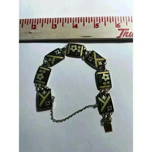 Vintage Spanish Damascene Link Bracelet Flowers Gold Tone Circa 7”