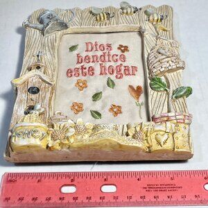 Vintage Spanish God Bless Our Home Christian Art Frame Blessing Cottage Core Bee