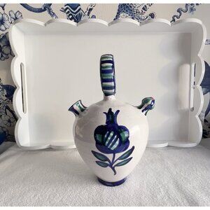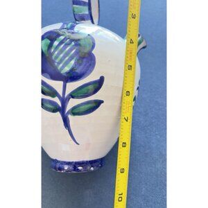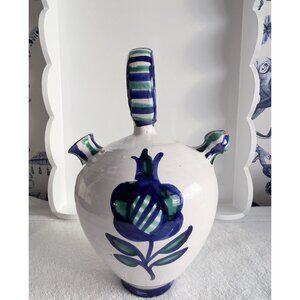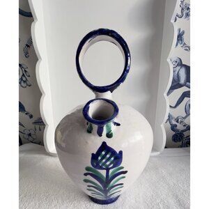 Vintage Spanish Hand Painted Water Vessel Blue White Jar Tulip Made in Spain