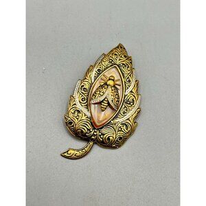 Vintage Spanish Toledo Ware Leaf Brooch Bug Intricate Details Damascene Style