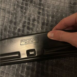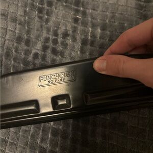 The vintage Sparco Punchodex 3 Hole Punch is a heavy-duty metal tool designed for punching holes in paper. With its classic black color and sturdy construction, this Sparco model is reliable for any business or industrial setting. The Punchodex 3 can efficiently punch three holes at once, making it ideal for bindery and finishing tasks in printing and graphic arts projects. This nostalgic piece of equipment from Sparco is a durable and functional addition to any workspace