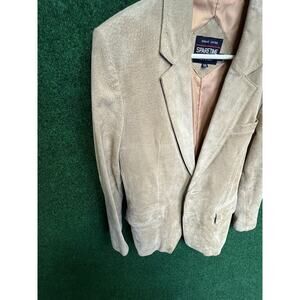 Vintage Sparetime Leather Suede Jacket Blazer Tan Buttonup Front Pockets Sz 42. Shipped with USPS Priority Mail.