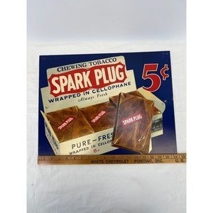 Vintage Spark Plug Chewing Tobacco Litho USA Liggett & Myer Sign