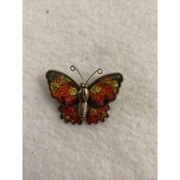 Vintage Sparkle Enamel Butterfly Pin Brooch Unsigned Glitter Novelty Cute Spring