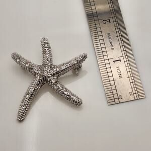 Vintage Sparkling Cubic Zirconia Silver Starfish Brooch Pin