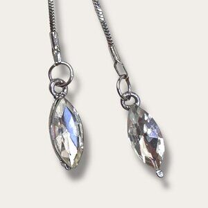Vintage Sparkling Flower Slide Lariat Style Necklace Marquise Crystals Silver-To