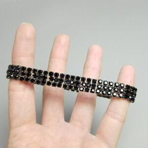 Vintage Sparkly Black Rhinestone Three Row Stretch Bangle Bracelet, Estate