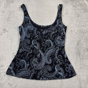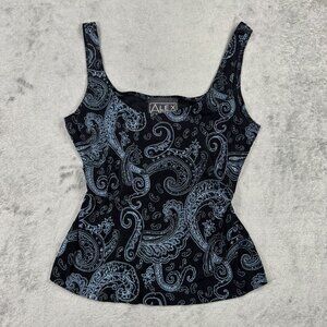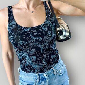 Vintage Sparkly Paisley Print Y2K Tank Top Womens Glam Whimsy Fairy Stretch Sz M
