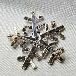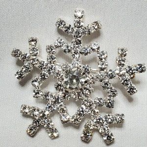 Vintage Sparkly SNOWFLAKE Rhinestone Brooch Christmas Pin 1-1/2 inch