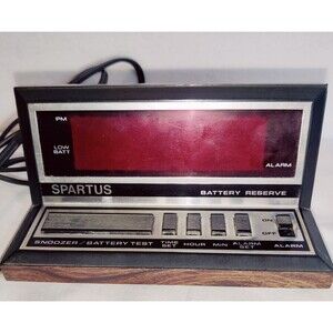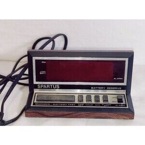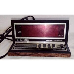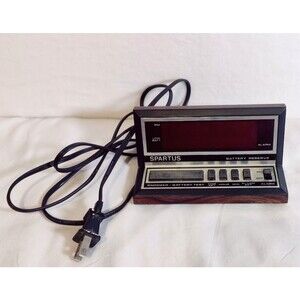 Vintage Spartus Digital Alarm Clock Model 1140 Faux Wood Red Display Working