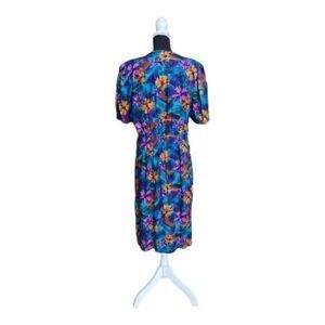 Vintage Special Effects Tropical Floral Print Short Sleeve Dress Sz 16M