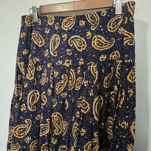 Elevate your style with this chic paisley print skirt. Featuring a vibrant blue and orange design, it's perfect for any occasion.