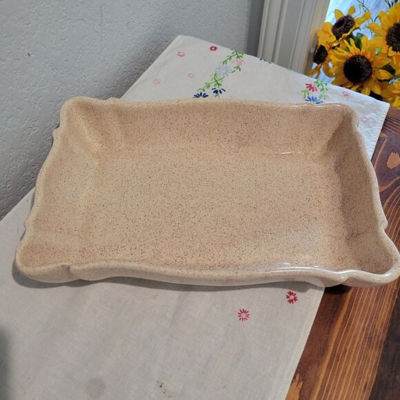 Vintage Speckled Tan Haeger Rectangle Tray Serving Dish 11”x7.5” 2.25” Deep USA