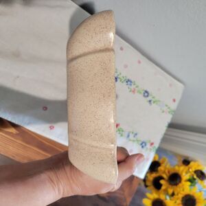 This Vintage Speckled Tan Haeger Rectangle Tray Serving Dish is a unique and handmade piece from the 1960s, made in the United States. With dimensions of 11x7.5 and 2.25 deep, it is perfect for serving a variety of dishes with its retro charm and mid-century aesthetic. The speckled tan design adds a touch of vintage flair to any table setting or collection, making it a versatile and stylish addition to any home. Also great as a catchall or trinket tray.