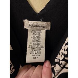 The Vintage Speechless Babydoll Mini Dress in black and white with a deep V-neck is a stylish and feminine piece perfect for various occasions such as travel, weddings, or parties. Made of polyester and spandex, the stretch fabric offers comfort and flexibility. The floral pattern, sleeveless design, and pullover closure add to its vintage charm, making it a trendy choice for the 2000s Y2K fashion era. This A-line mini dress is a must-have for women looking to embrace a classic yet modern style.