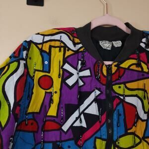 Vintage Speed Limit MPH Womens Abstract Mosaic Print Colors Bomber Jacket Size M