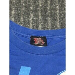 This Vintage Speed Racer Shirt is a youth size 14-16 with a blue graphic print featuring the beloved character Speed Racer. Made of cotton with a medium fabric wash, this short sleeve shirt has a crew neckline and is machine washable. With a regular fit, this limited edition tee is perfect for all seasons and is a must-have for any fan of 90s cartoons, anime, and classic TV shows. Ideal for walking, school, or racing activities, this Speed Racer shirt is a fun and stylish addition to any unisex kids' wardrobe.