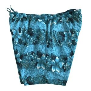 Vintage Speedo Nylon Green Floral Hawaiian Lined Swim Board Shorts Men Size L