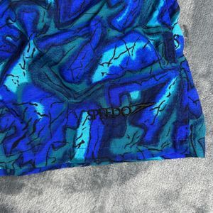 * Design: Bold blue abstract print, 90s retro aesthetic, embroidered Speedo logo on back