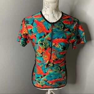 Vintage Speedo Swim Top Bright Iguana Print Medium