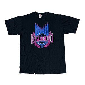Vintage Speedo T Shirt XL Made In USA Black 1990s Single Stitch Purple Blue