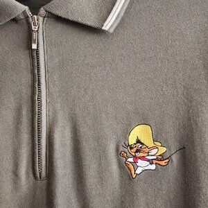 Vintage Speedy Gonzales Shirt Mens Medium Olive Green Warner Bros Polo 90s Cartoon