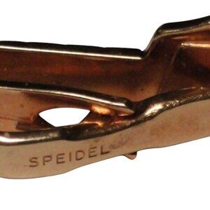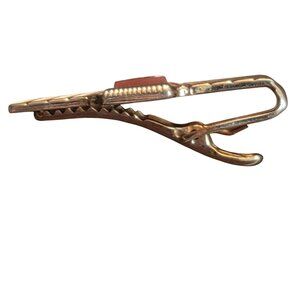 This Speidel tie clip, crafted with a gold-tone finish, features an elegant intaglio design carved into a carnelian stone. The accessory exudes sophistication and adds a refined touch to formal attire.