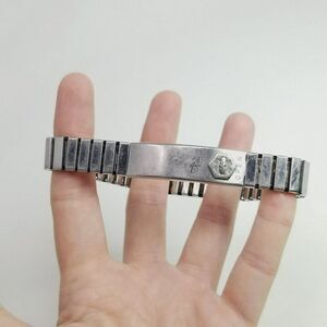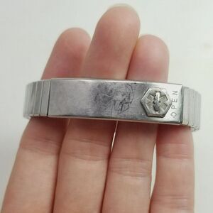 Vintage Speidel ID Stretch Bracelet Medical Info Hinged Locket Panel Silver Tone