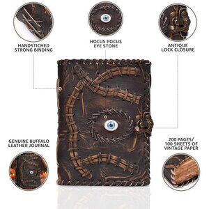 Vintage Spell Book: Leather Village Vintage Journal is made from Genuine Leather featuring an Evil Eye design on the cover and Secured with a protective clasp lock to safeguard the journal and its contents.