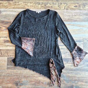 Vintage Spencer Alexis USA Slinky Beaded Asymmetrical Hem Top Long Sleeve Black