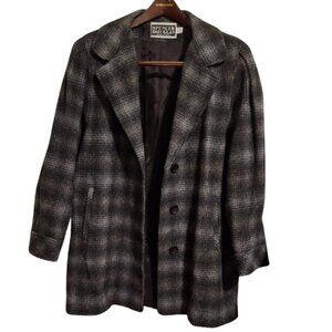 Vintage Spencer Douglas Womans Plaid Peacoat 14 80s 90s - Dark Academia, Preppy, Librarian Chic, Collegiate, Heritage, Old Money, Grandpacore, Winter, Staple Piece, Versatile, Neutral, Sustainable Fashion