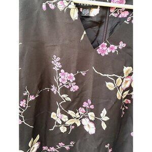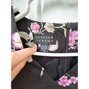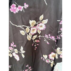 Vintage Spenser Jeremy 100% Silk Midi Pink Black Floral Dress Long Sleeve Sz 20