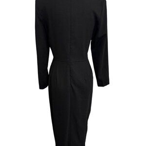 Vintage Spenser Jeremy Black Wool Long Sleeve Midi Dress Size 10 Made In USA LBD
