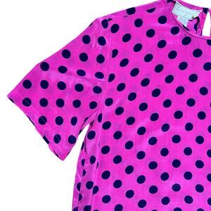 Vintage Spenser Jeremy Size Medium Pink Polka Dot Silk Short Sleeve Blouse Retro