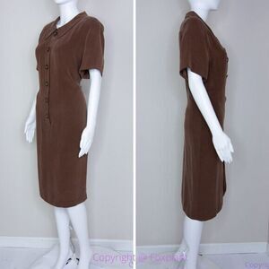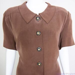 Vintage Spenser Jeremy 100% silk button down short sleeves brown midi dress, 16