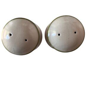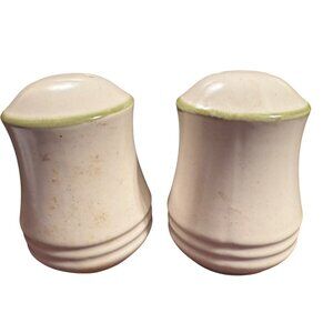 These vintage salt and pepper shakers evoke a rustic charm with their harvest-inspired design. Their ceramic build and green-trimmed tops make them a delightful addition to a retro-themed kitchen or table setting.