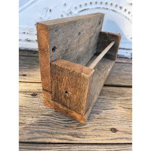 Here for your consideration is a nice vintage spice rack with jars. I believe the rack is not original to the jars. It looks like old barn wood. Some of the jars are slightly difficult to push in the rack. However, they do fit but are very snug. The rack measures 9.5x3.5x5". The jars measure 4" tall. A couple are missing their corks but some of the corks are up inside the jar. They have no chips or cracks but do have a little paint wear. Overall they are in good displayable condition.