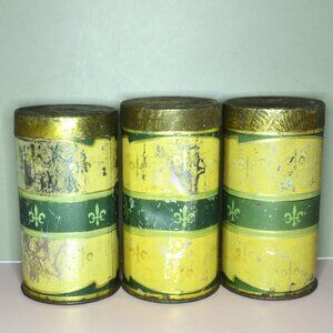 Set of 3 spice tins by Festal Hal packed for Goddard Groc. Co. St Louis . Each one is 4 inches high, 2 in diameter.