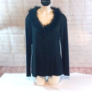 Vintage Spice Wimsigoth Feather Black Dressy Fitted Long Sleeve Top L