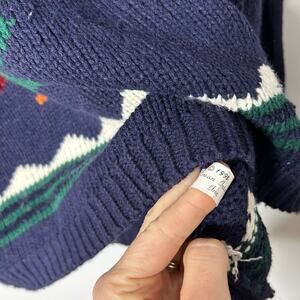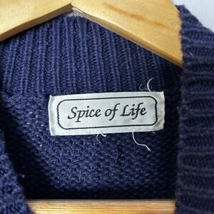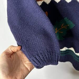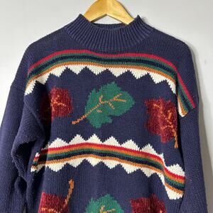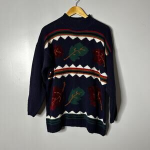 Vintage Spice of Life Chunky Knit Novelty Print Sweater Women’s Large Blue Leaf