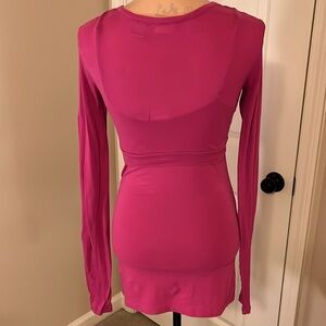 Vintage Spiegel crop top tank top combo. Size small. Fuchsia. Tank top is 96% cotton, 4% spandex. Tank top has adjustable spaghetti straps and is very long. Long sleeve crop top is 100% cotton. Tank top pit to pit is 16 inches. Links from top of adjustables spaghetti strap is 29 inches. Crop top from pit is 16 inches. Length from top of shoulder is 13 inches. Length of sleeve is 37 inches from back of neck. All measurements are approximate. Sleeves are very long, but can be rolled up. Crop top material is very lightweight and has four buttons in the front. Excellent vintage condition.