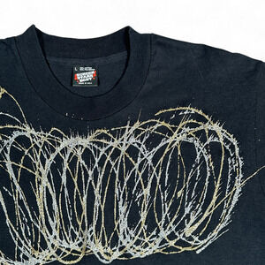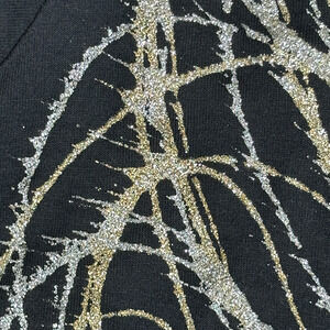 Vintage Spin Art Shirt Adult MEDIUM Black Abstract Gold Silver Glitter USA 80s