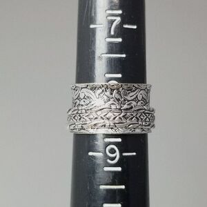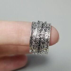 Vintage Spinner Ring, Silver Tone Size 8 Band, Wide Stacking Leaf Embossed