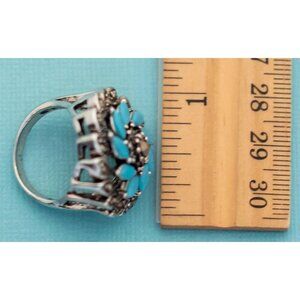Vintage Spiral Blue Flower Ring, Size 8 - E27