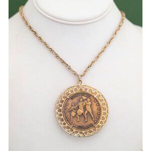 For sale is a beautiful vintage gold tone necklace with circular-shaped pendant.