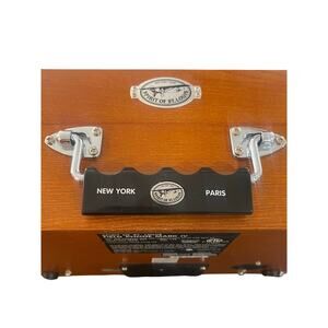 Untested, sold as is. Does have a chip of the wood off the back hinge as pictured.