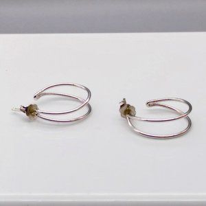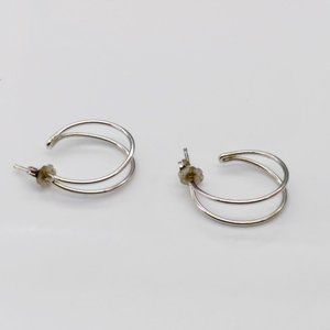 Vintage Split Hoop Earrings, Double Skinny Hoops in Silver Tone Stud