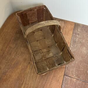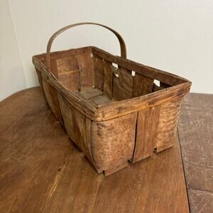 Vintage Split Wood Basket & handle Large 17" Long Rustic Country Farmhouse Decor